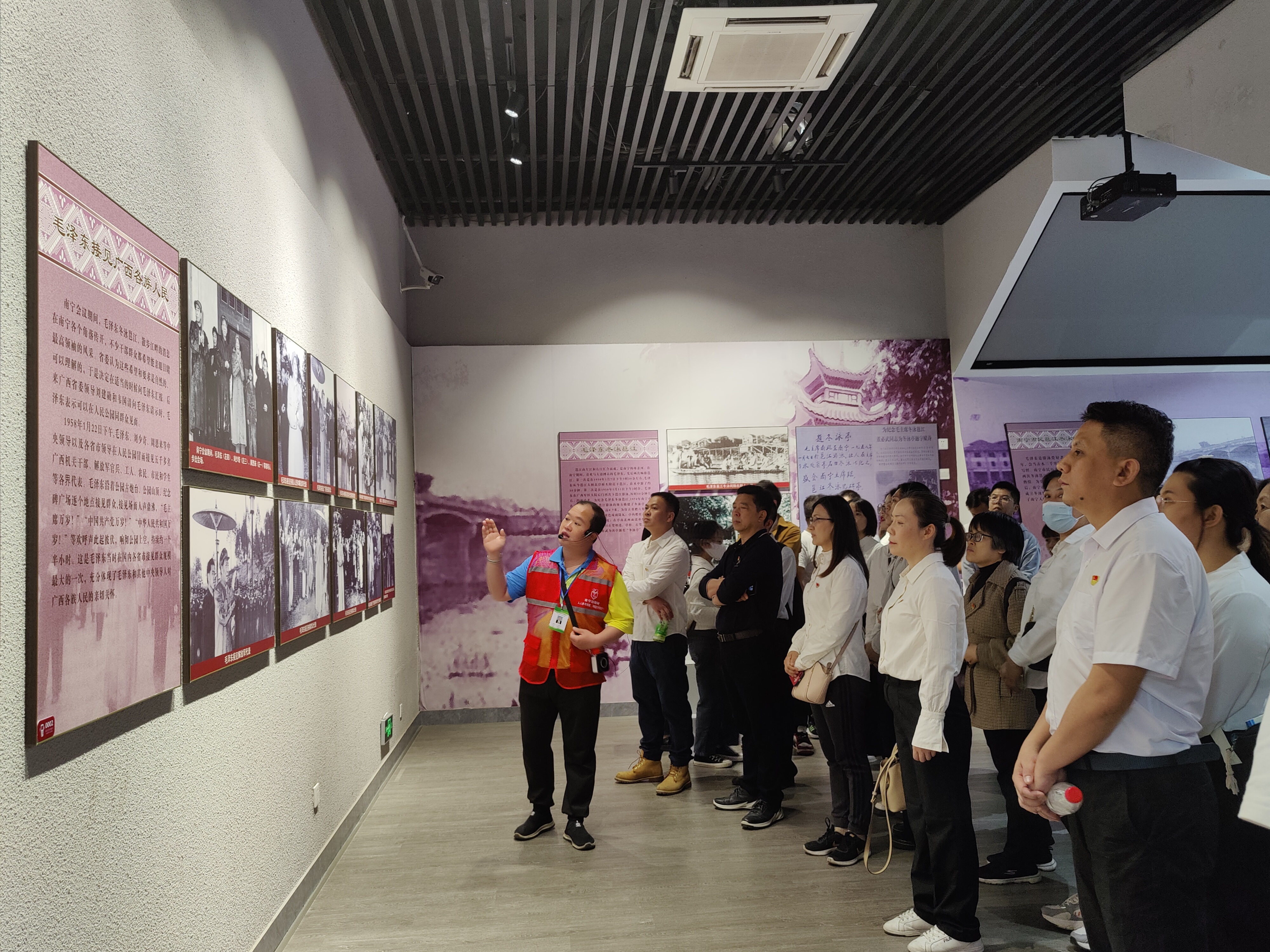 “我志愿加入中國共產(chǎn)黨……隨時準(zhǔn)備為黨和人民犧牲一切,永不叛黨?!痹诿飨右姀V西各族人民紀(jì)念館,全體人員在領(lǐng)誓人的帶領(lǐng)下舉起右拳,面對鮮紅的黨旗作出莊嚴(yán)宣誓。隨后在紀(jì)念館講解員引導(dǎo)下,通過一張張照片,一件件實物,見證毛主席對廣西各族人民的親切關(guān)懷。