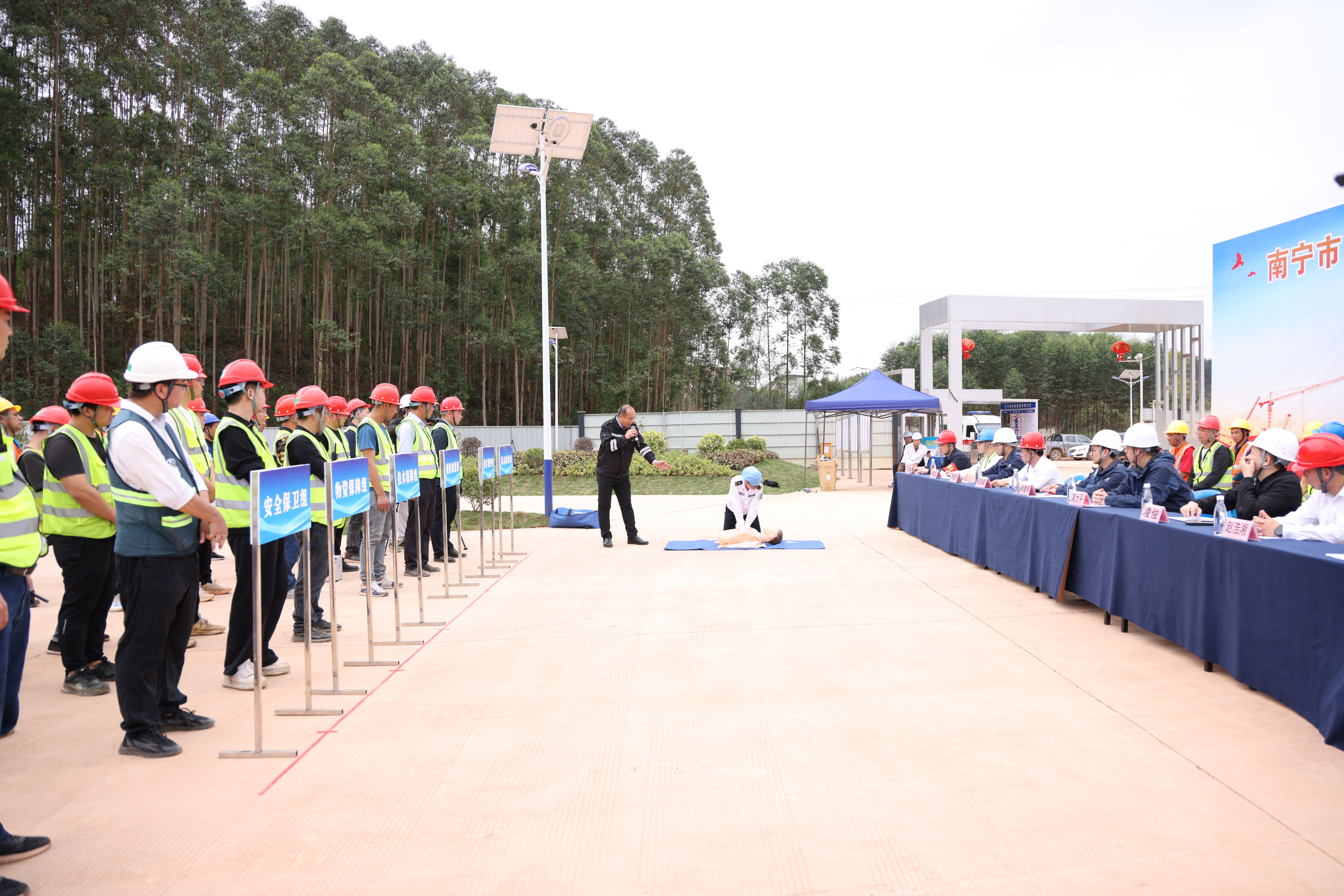 演練過程中,各救援小組按照應(yīng)急預(yù)案的責(zé)任分工密切配合,整個過程組織有序、銜接緊密,最終順利完成了突發(fā)事故的緊急救援任務(wù),達到了預(yù)期的演練效果。演練結(jié)束后,南寧市玉洞醫(yī)院的醫(yī)生為大家講解了心肺復(fù)蘇的基本知識和技巧,并現(xiàn)場演示了單人徒手心肺復(fù)蘇及人工呼吸法,指導(dǎo)參演人員進行實際操作演練。