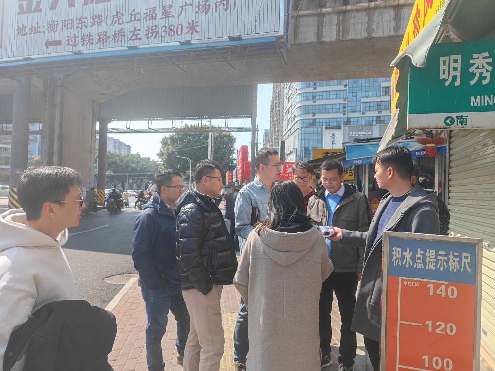 最后,周柏建一行來到秀田路、明秀路積水點(diǎn)現(xiàn)場(chǎng),仔細(xì)了解積水點(diǎn)狀況及改造計(jì)劃。周柏建指出,可以考慮運(yùn)用永久工程+臨時(shí)工程相結(jié)合的方式解決積水問題,以保障汛期市民出行安全。運(yùn)維部門要排查明秀路東路雨水管,及時(shí)清淤疏通,力爭(zhēng)汛期前達(dá)到雨季雨水盡量不壅水至路面的效果,最大程度改善雨季路面積水問題。