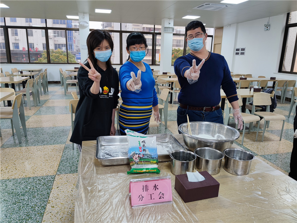 待一切準(zhǔn)備就緒,比賽開始。各參賽隊(duì)分工明確,且有各自的戰(zhàn)術(shù),大家爭(zhēng)分奪秒地和面、按窩、包餡、搓圓、擺盤,團(tuán)結(jié)協(xié)作,其樂融融……在選手們的巧手下,一個(gè)個(gè)充滿愛心的湯圓逐漸成形。隨后,裁判組通過對(duì)各參賽隊(duì)湯圓數(shù)量與質(zhì)量的雙重評(píng)比,最終由排水公司韋春芳、郭念城、李婧瑤組成的參賽隊(duì)獲得了第一名。
