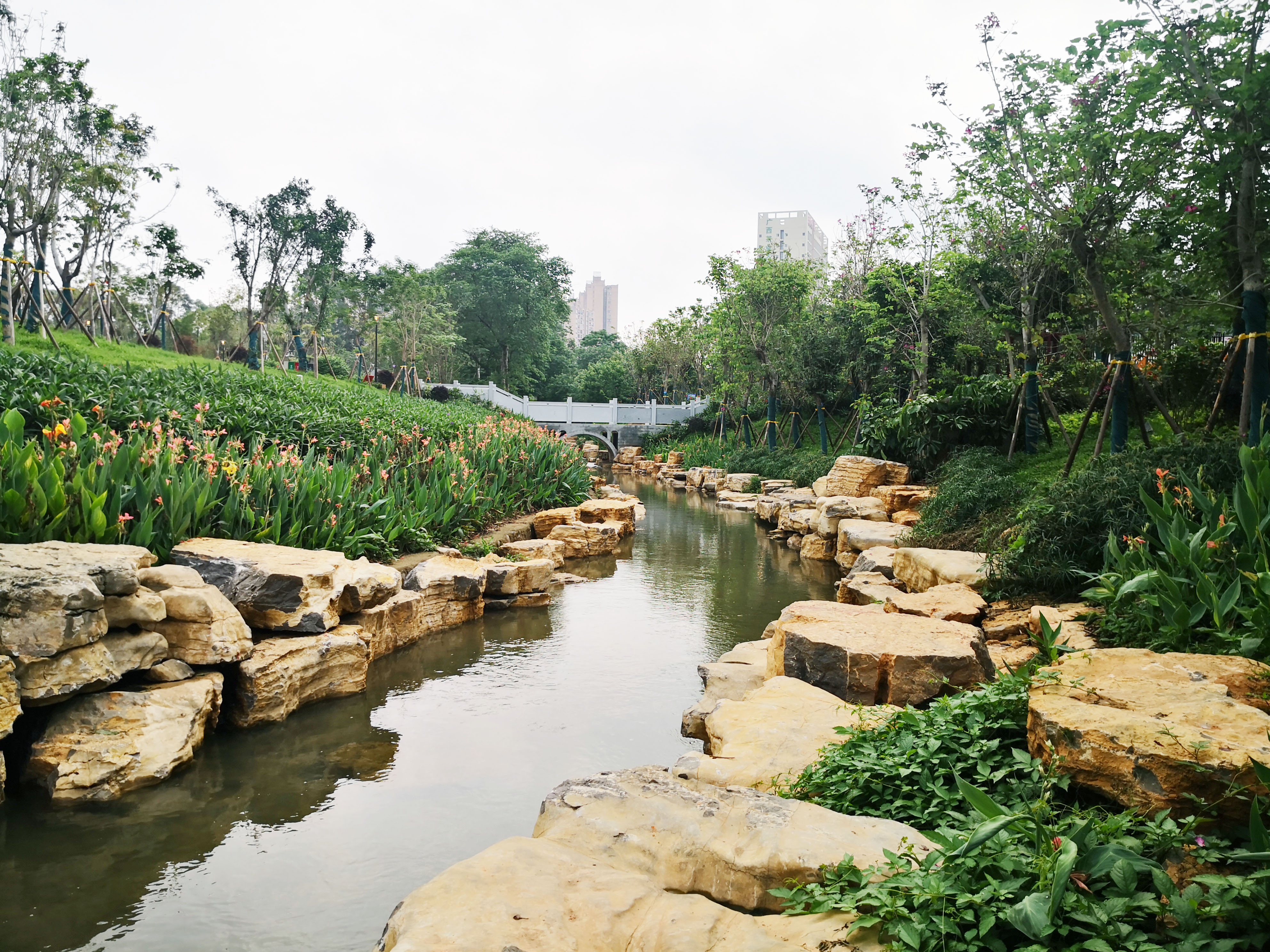 項(xiàng)目建設(shè)前,亭子沖河道流域范圍內(nèi)存在管網(wǎng)不完善、錯(cuò)混接、污水直排、河道淤堵以及缺乏水流動(dòng)性等問題,水體呈黑臭狀態(tài),困擾著周邊居民的日常生活。為解決上述問題,根據(jù)市委、市政府部署,市排水公司自2019年6月起啟動(dòng)南寧市亭子沖流域治理工程,項(xiàng)目建設(shè)內(nèi)容包括總?cè)莘e39900立方米的調(diào)蓄池6座,污水提升泵站7座,配套建設(shè)截污管道約13公里,休閑公園2座。項(xiàng)目建成后,有效改善了河道流域周邊生態(tài)環(huán)境,降低流域范圍內(nèi)的污水溢流風(fēng)險(xiǎn),基本消除河道黑臭狀態(tài),河道舊貌換新顏,成為南寧市的綠色新名片。中國農(nóng)業(yè)發(fā)展銀行一行對亭子沖流域治理工程的建設(shè)和治理效果表示高度贊賞。