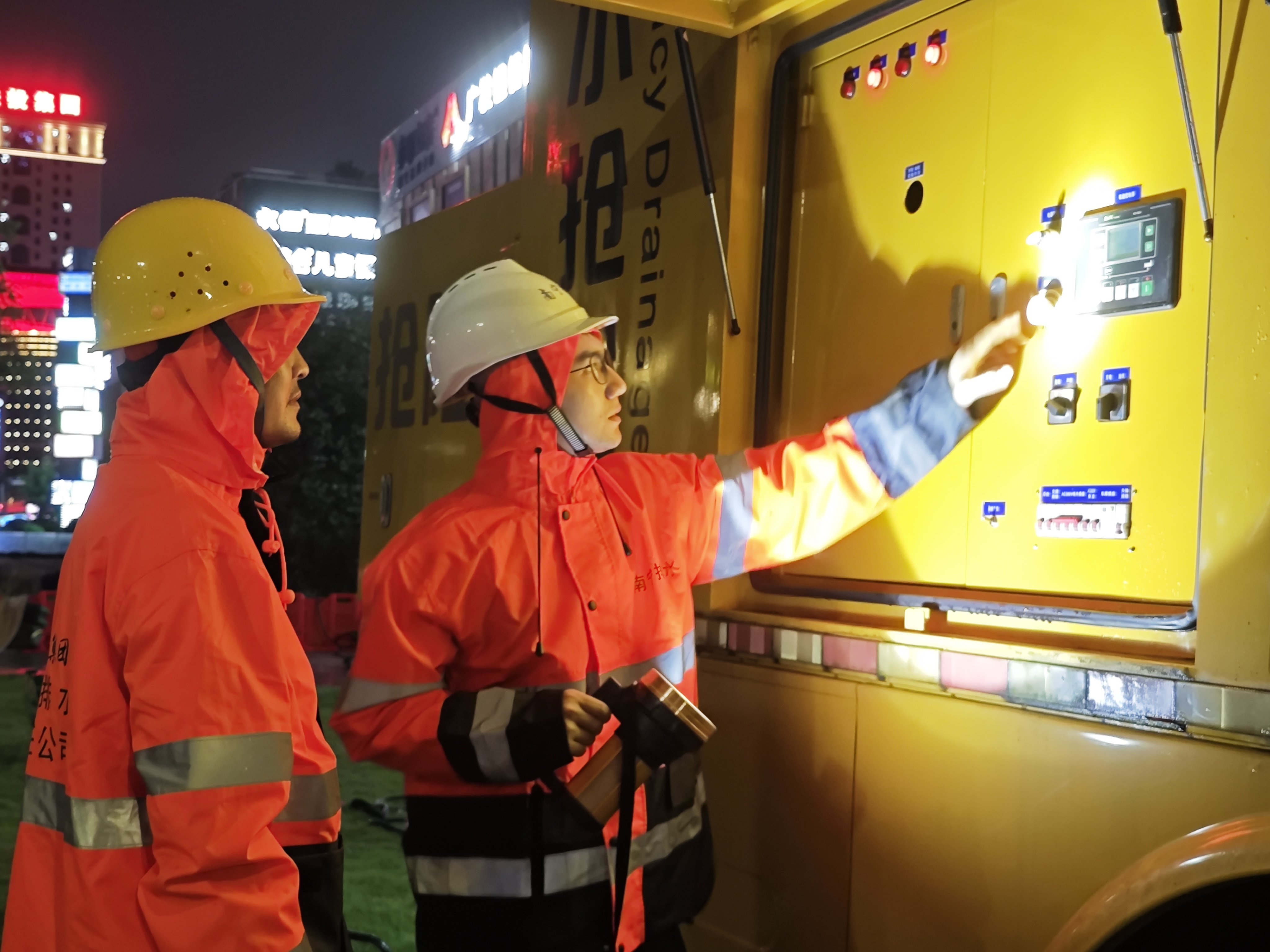 隨著降雨增強和市防澇辦預警等級的連續(xù)升級,市排水公司也同步升級應急響應,于27日22時18分啟動了防內(nèi)澇等級一級響應。梁煜華和他的同事們根據(jù)分工,奔赴城區(qū)不同的易積水路段開展處置工作,有的在調(diào)度室統(tǒng)一指揮調(diào)度,有的駐守現(xiàn)場開展積水抽排工作,有的輾轉(zhuǎn)多處排查積水原因、及時支援……經(jīng)過一夜的排水搶險工作,截至28日7時,市區(qū)范圍內(nèi)發(fā)現(xiàn)的積水路段已全部完成處置,保障了市民早高峰順暢出行。本次降雨,市排水公司共出動661人參與防汛備勤,出動車輛112輛,39座泵站、閘壩全員在崗值守。
