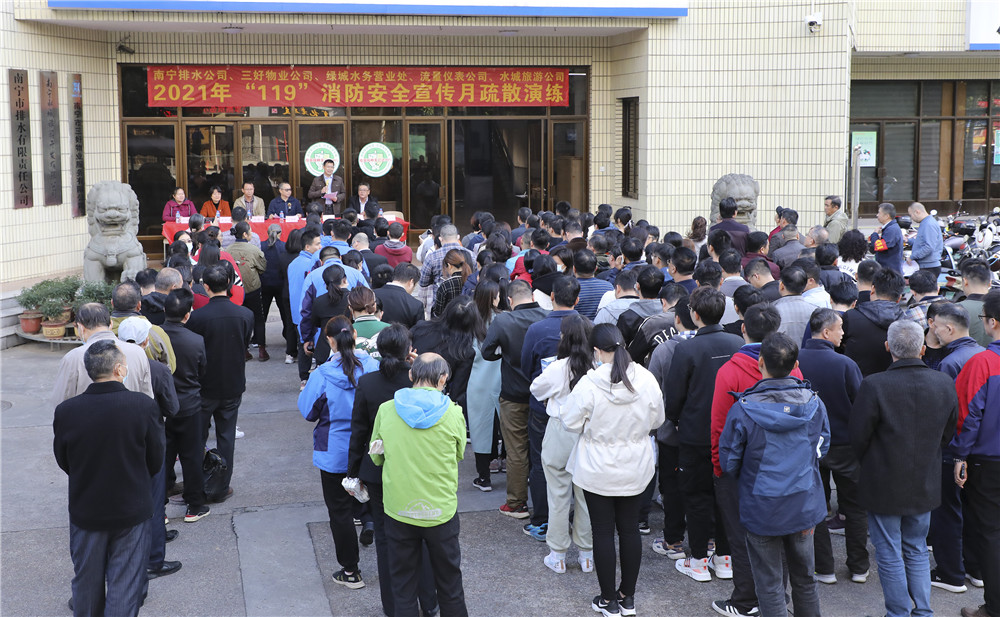 11月23日下午4時,在南寧市江南區(qū)體育路4號辦公樓,隨著集團(tuán)公司副總經(jīng)理、排水公司董事長周柏建的一聲“開始”,2021年“119”消防安全宣傳月火災(zāi)疏散應(yīng)急演練活動正式拉開序幕。