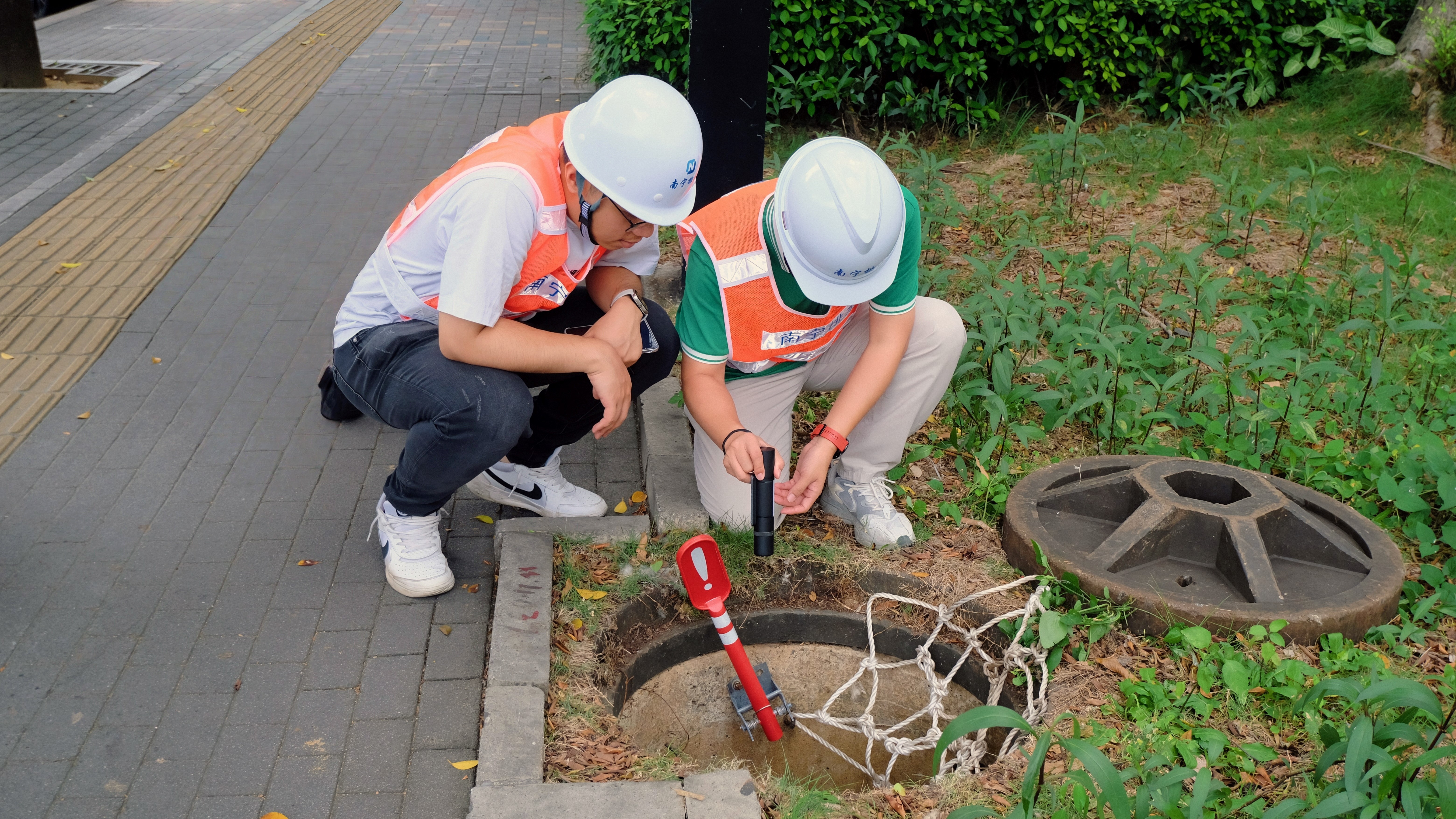 市排水公司工作人員對高考考點周邊排水管道進(jìn)行檢查
